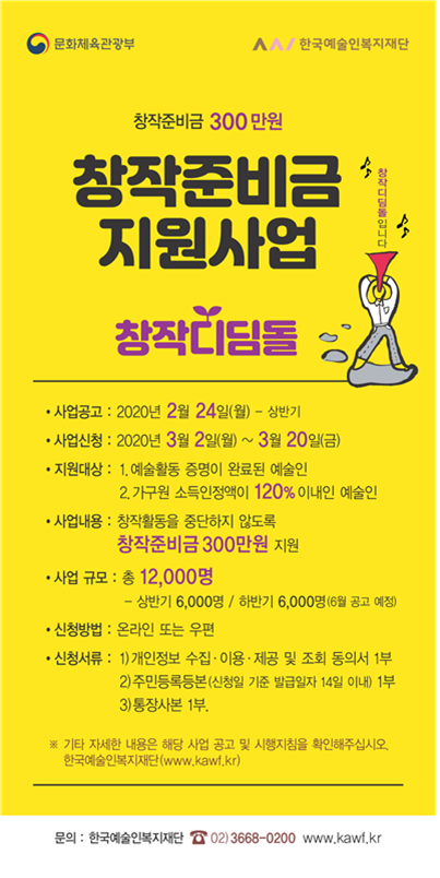 예술인의 창작활동을 지원하는 《창작준비금지원_창작디딤돌》 사업을