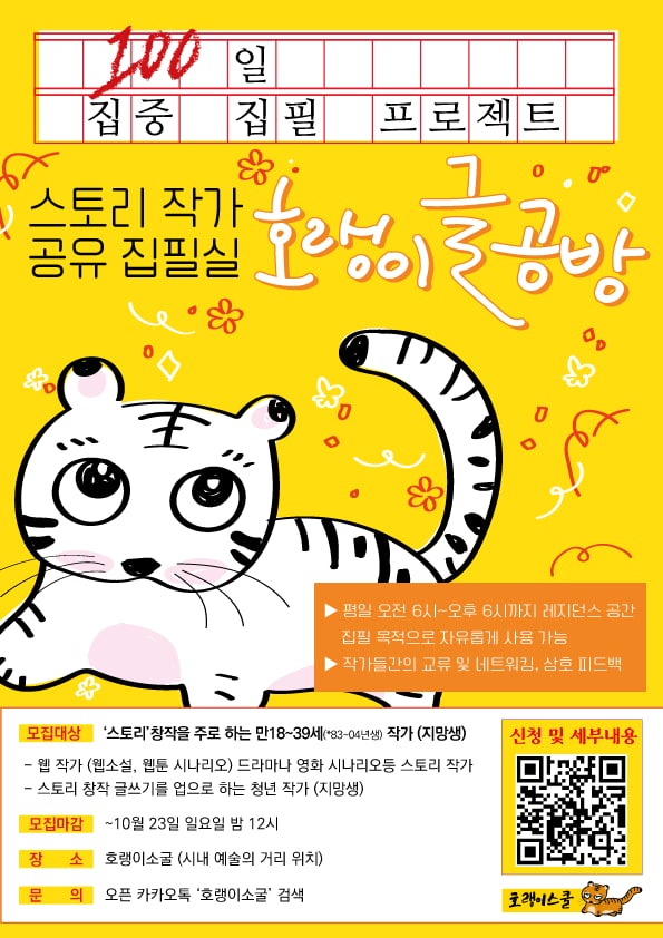 스토리 작가 공유 집필실 '호랭이 글 공방' 참여자 모집
