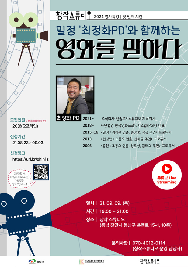 [충남정보문화산업진흥원] 2021 창작스튜디오 ★[특강] 밀정 최정화 PD와 함께하는 <영화를 말하다>★ 모집