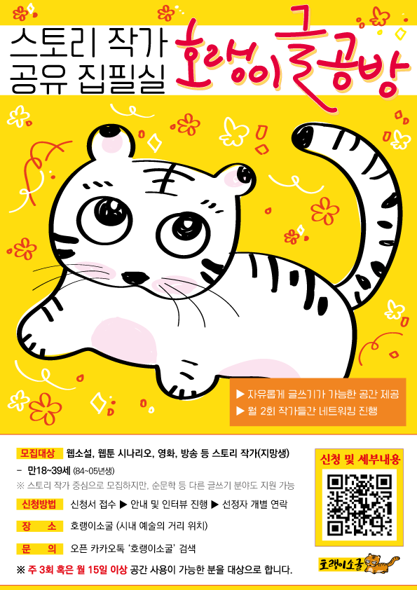 스토리 작가 공유 집필실 <호랭이 글 공방> 참여자 모집(수시 모집)